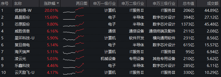 成份股方面,优刻得20CM涨停,晶晨股份涨超15%,芯原股份涨逾9%,威胜信息、星环科技、复旦微电、海天瑞声等个股跟涨。