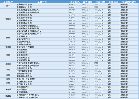 基金经理是一只基金产品最核心的成员,能决定一只基金的投资方向、投资策略以及投资风格,基金经理出色的择时选股能力和调研预测能力是基金业绩的有力保证,所以基金经理是投资者在选择基金产品时的重要依据。基金经理的变动很大程度上会影响到基金产品未来的表现,是一个需要特别关注的信息。2.12日共有26位基金经理发生任职变动。
