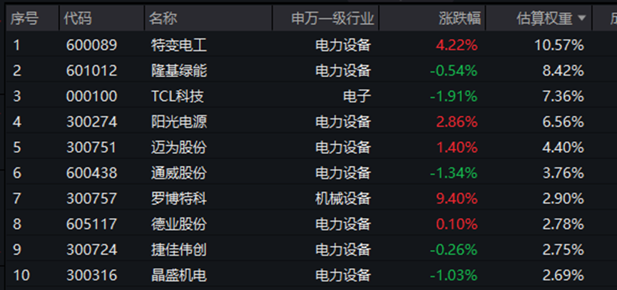 光伏ETF汇添富(516290)标的指数成分股涨跌不一,罗博特科涨超9%,特变电工涨超4%,阳光电源涨超2%,TCL科技、通威股份等回调。