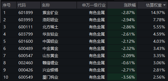 【有色ETF汇添富(159652)标的指数前十大成分股】