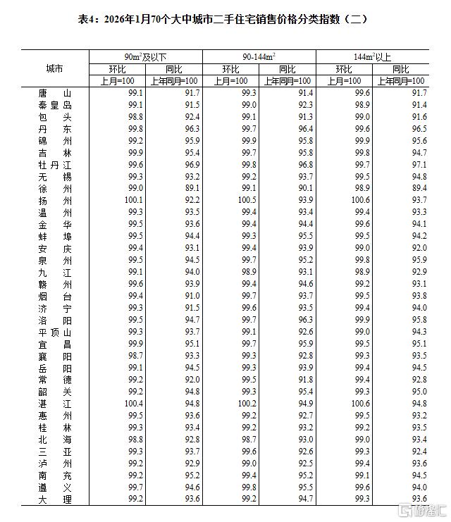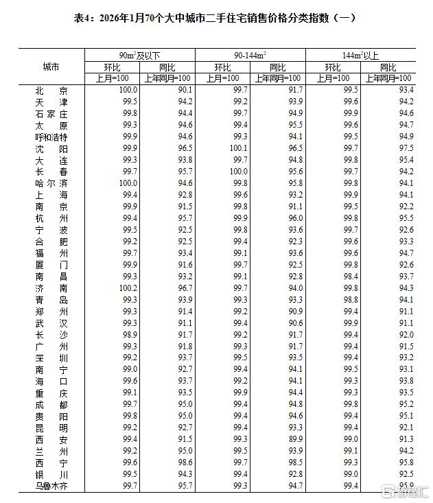 2月13日,国家统计局公布2026年1月份70个大中城市商品住宅销售价格变动情况。