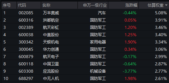 航空ETF汇添富(159257)标的指数成分股涨跌不一,天银机电、中无人机涨近2%,中直股份等涨超1%,洪都航空等微涨,万丰奥威、中国卫星等回调。