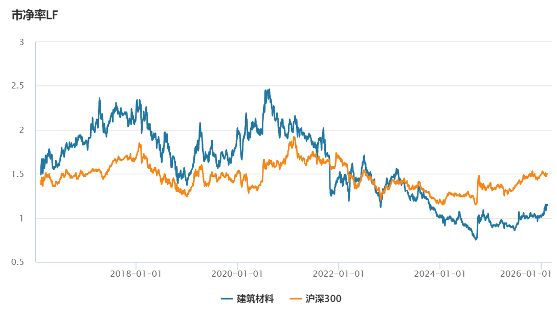 从估值维度看,当前中证全指建筑材料指数市净率(LF)仅1.15%,处于近十年25%以下分位,部分水泥龙头市净率已跌破0.8倍,这意味着市场给予此类资产的估值已充分甚至过度反映了悲观预期,具备充足的安全边际。
