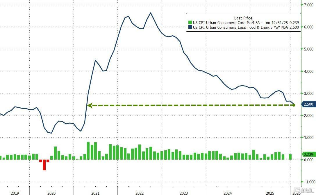 核心CPI同比上涨2.5%,低于12月的2.6%,为2021年以来最低水平。