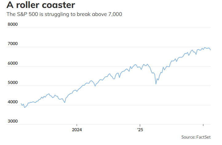 标普500指数周五勉强上涨,但仍以周线下跌收官,结束了艰难的一周。纳斯达克综合指数则没有那么幸运,连续第四天下跌,连续第五周收跌,这是自2022年以来最长的周线连跌,这个以科技股为主的指数自10月底以来就没有创出历史新高。