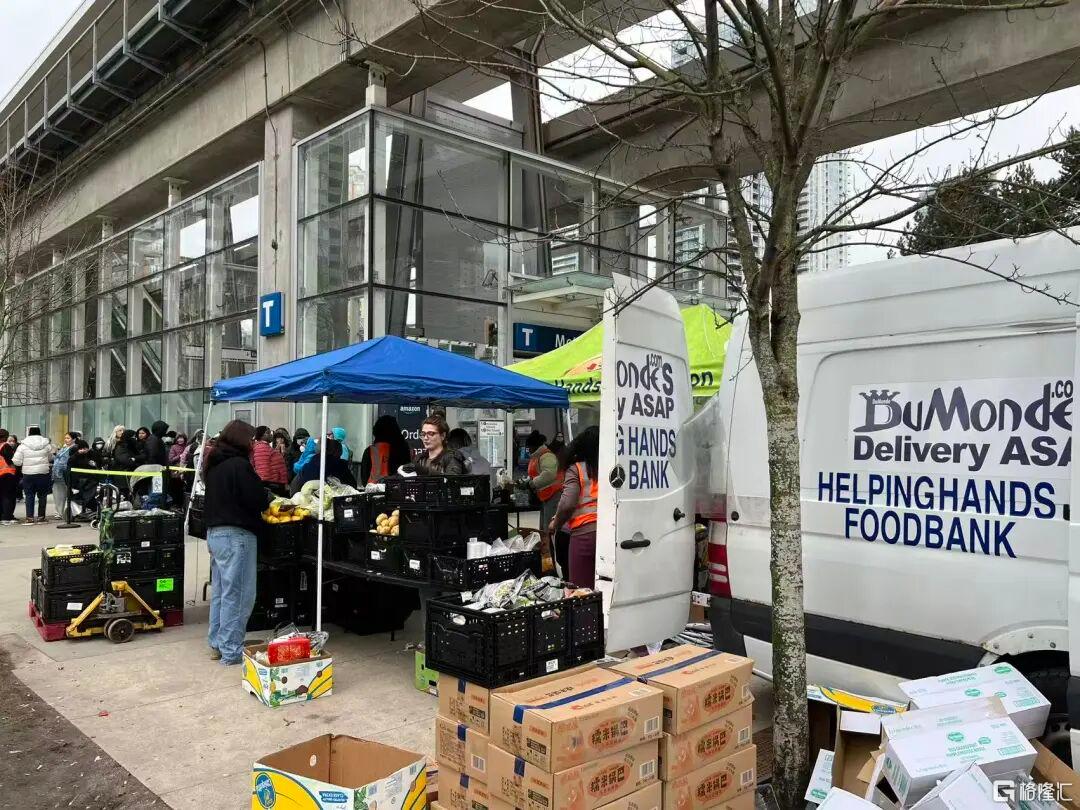 温哥华过年没有热闹的放鞭炮、舞龙灯这些东西,但街头会有各种应时慈善和免费馈赠,也增加了不少温馨。这几张照片,就是街头免费派发食物,谁都可以领,拉着拖车排队领取的,往往华人大爷大妈居多。整个大温地区约三百万人,其中华人占到了五分之一,60万人,华人元素到处都是,在这里你几乎可以不用懂英语都可以自如生活,像俞敏宏、王祖贤这些名人,都住在温哥华。