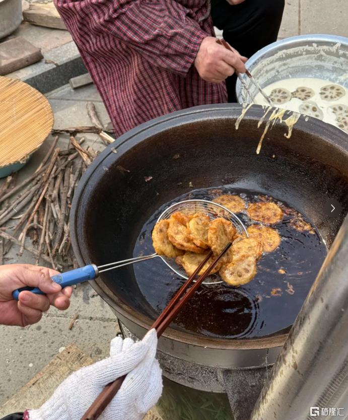 从一盆子生到一盆子熟,一盆子接一盆子。热油翻滚的声音里,金黄的藕夹、酥脆的丸子、喷香的带鱼依次出锅, 刚炸好的那一口,是刻在骨子里的年味,也是她们藏在油烟里的温柔。