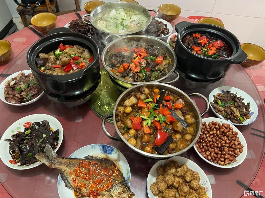 在我的家乡常德,除夕前几天就会开始吃年饭,各家亲戚接客吃年饭。 这一桌算是比较传统的常德年饭了,钵子菜是常德的特色,每家吃年饭都会炖上好几个钵,寓意日子越炖越红火。还有红烧鱼必不可少,不过这条鱼是不吃的哦,寓意年年有余。小时候我们都是四五点起床吃年饭,放一串鞭炮开启吃年饭模式,一边吃年饭一边慢慢天亮,寓意生活越过越敞亮。对于起床困难户来说,四五点起床吃年饭真的超级难熬。对我来说,年味就在每一道菜里,慢慢吃,细细品。‍‍‍