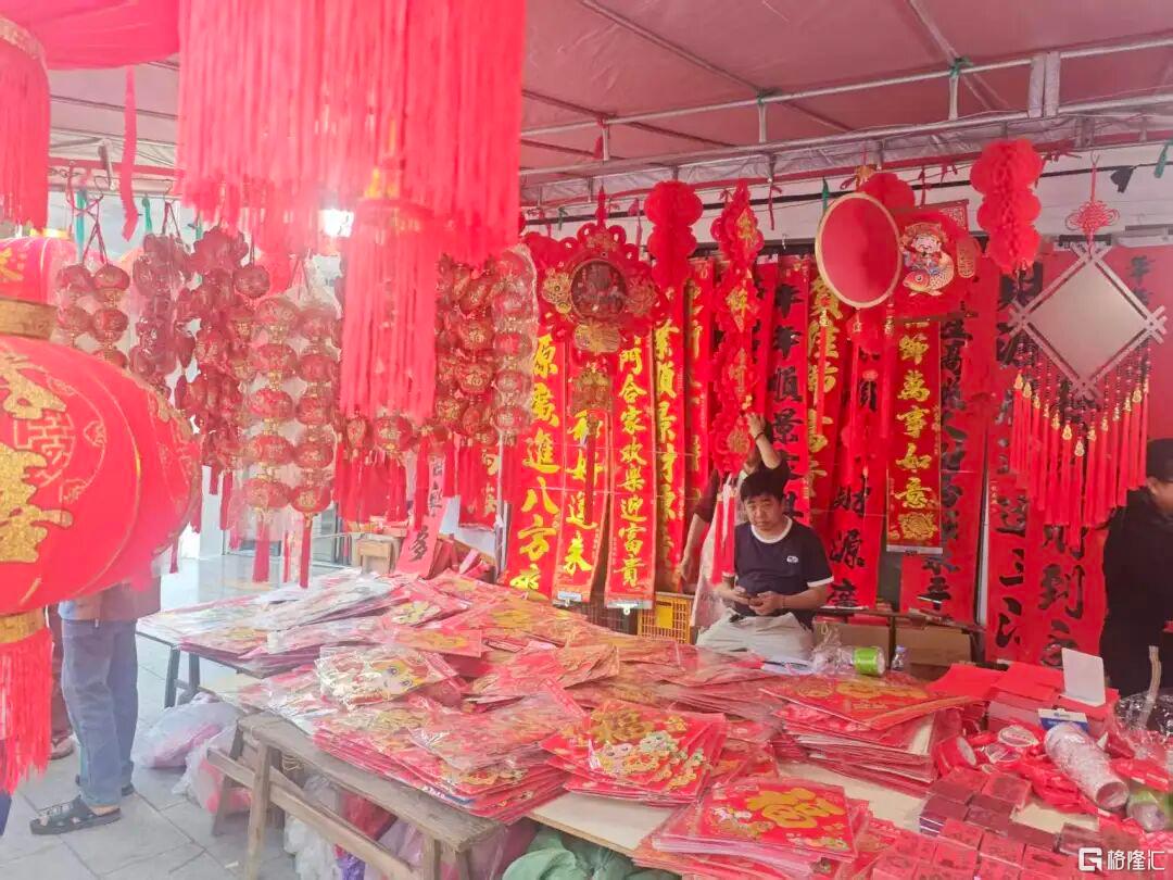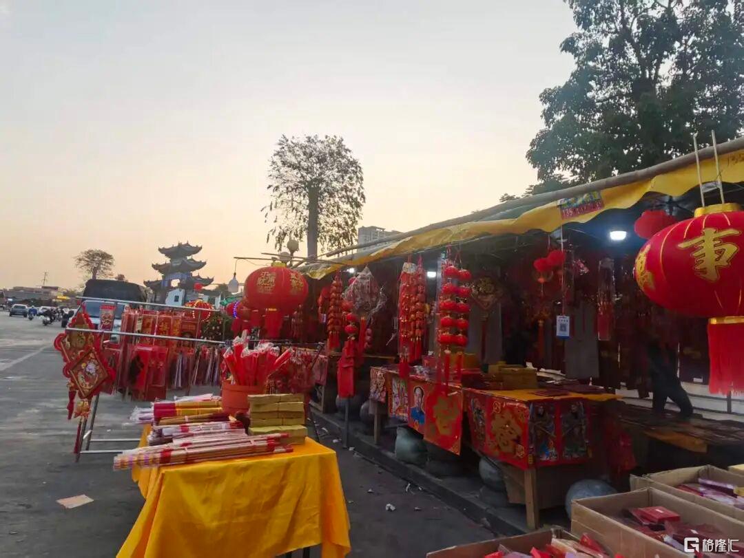 回北流过年的第一个街日,人潮裹着年味在风里流动。车鸣混着吆喝,红灯笼一串串晃着金光。在这条街上,所有的红纸金墨都通向同一个愿望。卖灯笼的阿姨手机响个不停,嘴角却一直弯着,身后古建筑的飞檐静静望着这片喧哗。这片红色海洋里,每个人都是被祝福浸透的。