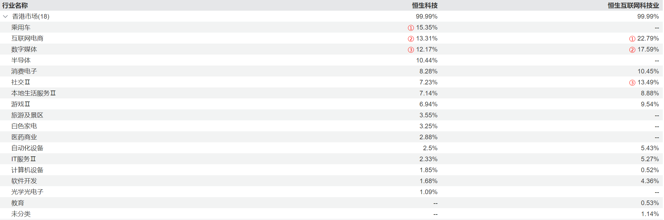 图:恒生科技指数与恒生互联网科技业指数分布行业对比