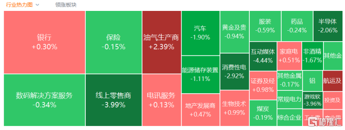盘面上,科技股普跌,AI应用、机器人、本地地产、石油股逆势上涨。恒生科技指数成分股中,京东健康、百度跌超6%,华虹半导体、金蝶国际、腾讯音乐、哔哩哔哩跌超5%,阿里巴巴、网易跌超4%,小米、中芯国际跌超3%。恒指成分股中,中石油、恒基地产涨超3%,美的集团、石药集团、中海油、李宁、恒隆地产涨超2%。