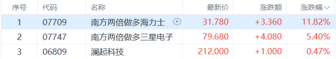 存储概念股活跃,南方两倍做多海力士超11%,南方两倍做多三星电子、澜起科技等跟涨。