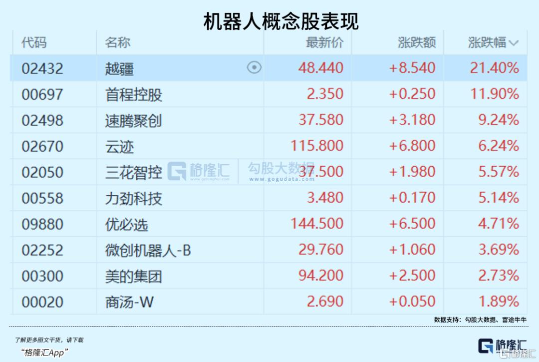机器人和智驾方面,越疆一度涨超20%、优必选、速腾聚创、禾赛、云迹、三花智控大幅反弹。