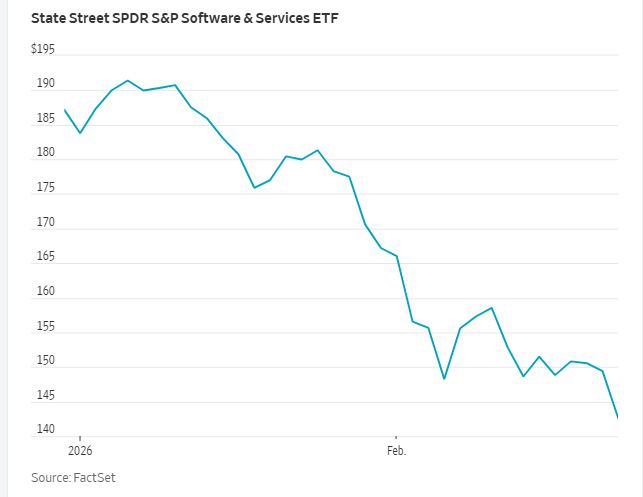 分析方面,Citrini Research在Substack上发布的一篇文章流传很广。文章设想了一个潜在的未来情景,即人工智能的进步,可能对从事白领工作的雇主造成冲击,并对金融和可选消费领域现有企业带来其他破坏性影响。