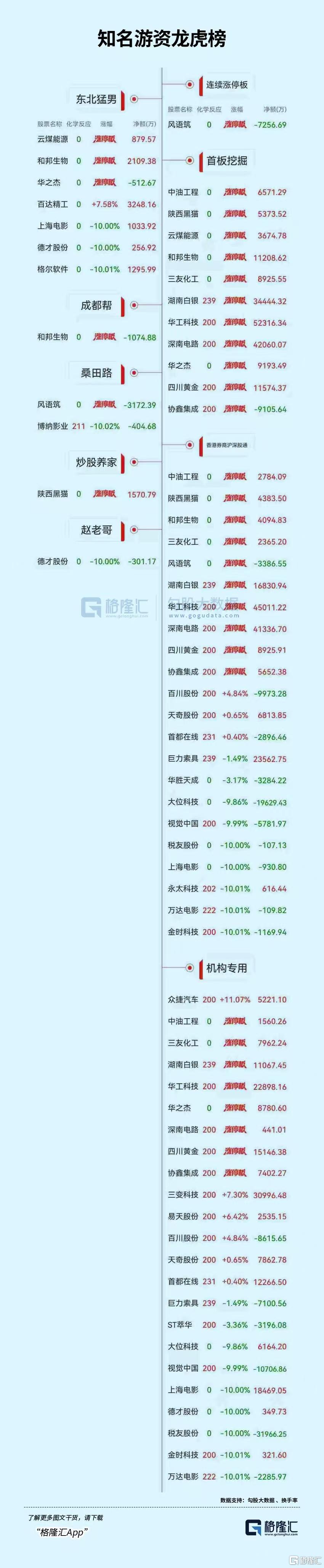 在龙虎榜中,涉及沪股通专用席位的个股有11只,大位科技的沪股通专用席位净卖出额最大,净卖出1.96亿元。