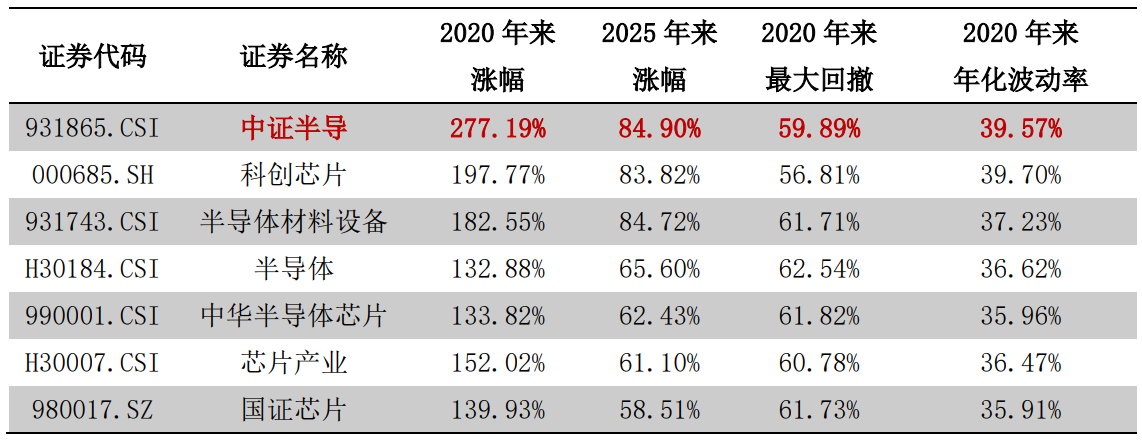 数据显示,截至2026年2月24日,中证半导2020年以来上涨277%,2025年以来上涨85%,均大幅领先科创芯片、半导体材料设备等主流可比半导体指数,凸显出更强的反弹锐度和“进攻性”,或在新一轮半导体周期中更具弹性。