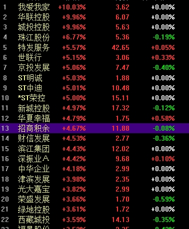 在上海房地产板块的带动下,A股房地产板块集体上扬,房地产中介我爱我家随后涨停,皇庭国际、特发服务、广宇集团、滨江集团、华夏幸福、万科A、华发股份等纷纷跟涨。
