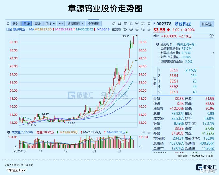 北方稀土、华锡有色、锡业股份、驰宏锌锗、云南锗业、中稀有色、章源钨业、永杉锂业、坤彩科技、中色股份、罗平锌电、再升科技、大中矿业等20余只个股封死涨停。