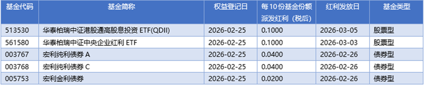 四、02月25日基金分红一览