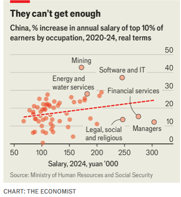 政府数据表明,中国的高收入职业正越来越集中在科技领域的顶层。金融行业虽然仍然待遇优厚,但在过去几年中,随着对银行家奖金的整顿,薪资增长缓慢。律师的情况更糟。