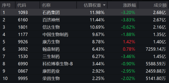 截至10:47,港股通创新药ETF(159570)标的指数权重股多数飘绿:石药集团、百济神州、三生制药跌超3%,中国生物制药、科伦博泰生物-B跌超1%,信达生物微跌。上涨方面,康方生物涨超1%,翰森制药微涨。