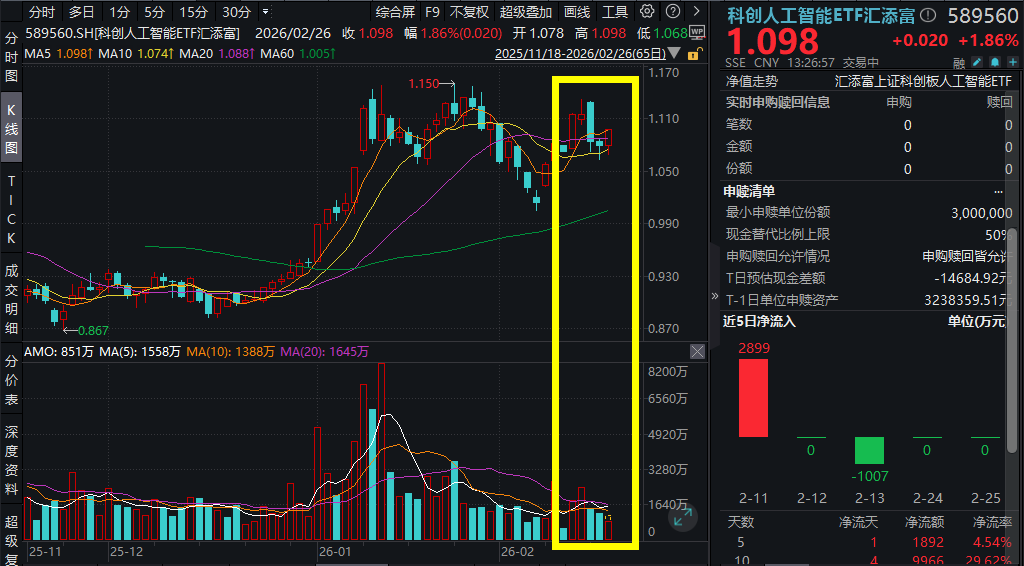 2月26日,A股市场午后拉升,AI产业链崛起!截至13:26,“20cm”涨跌幅的科创芯片ETF汇添富(588750)放量涨超2%,科创人工智能ETF汇添富(589560)同样午后飙升,涨1.86%!
