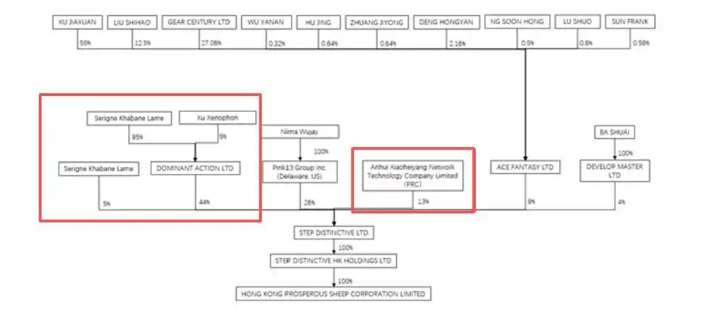 该收购完成后,小黑羊公司将正式成为其战略股东及核心运营合作伙伴,在未来三年拥有无语哥全球范围内的独家全链运营权。而安徽小黑羊网络科技有限公司的背后出资人,正是三只羊创始人张庆杨(疯狂小杨哥)和张开杨(疯狂大杨哥),股权全景穿透图显示二者分别持股51%、49%。