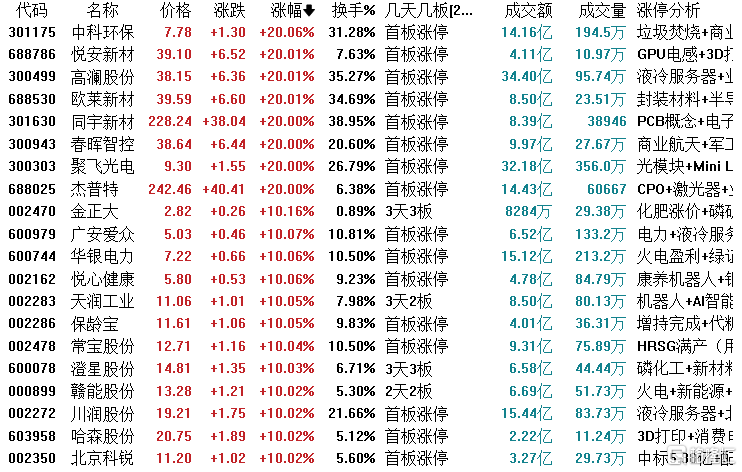 高澜股份:今日20cm涨停,偏离值20.00%,换手率35.27%,成交额34.40亿。龙虎榜数据显示,深股通专用席位净买入1.60亿元,机构净买入1.14亿元。
