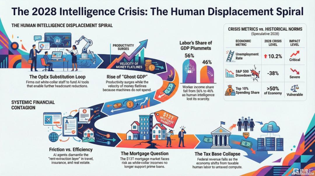 不同于以往那些喊着“天网降临”的科幻惊悚片,这份报告可怕在它的“无聊”——它没有终结者机器人,只有冷酷的财务报表、崩塌的信贷数据和消失的白领阶层。