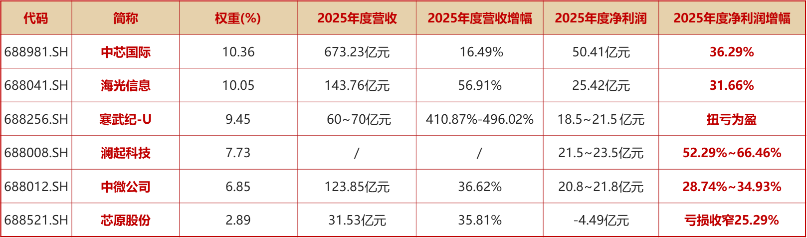 图:上证科创板芯片指数部分权重股2025年度业绩