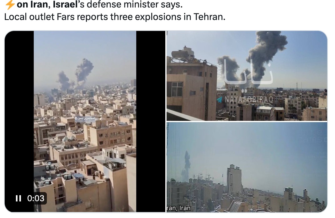 他称,以色列对伊朗发动了先发制人的打击,以消除对以色列的威胁。一名以色列安全官员称,对伊朗的袭击是以色列和美国共同行动的结果。截止目前,伊朗德黑兰三处发生爆炸,美方未对该情况做出回应。