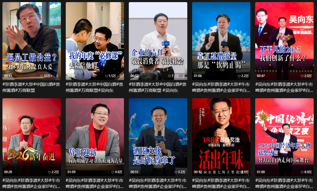 这一年,珍酒李渡以“万商联盟”为核心,通过“超级链接、超级产品、超级渠道、超级传播、超级组织、超级品牌、超级体验”七大战略,系统重塑行业生态。目前,万商联盟签约联盟商超4000家,其中2500多家动销进度超预期;核心大单品“大珍”覆盖全国280个城市,回款超9亿元。吴向东个人视频号“吴金东—珍酒李渡”形成显著IP效应,总播放量超6亿,位列2025年度《企业家视频IP100榜单》前三,持续赋能品牌声量。
