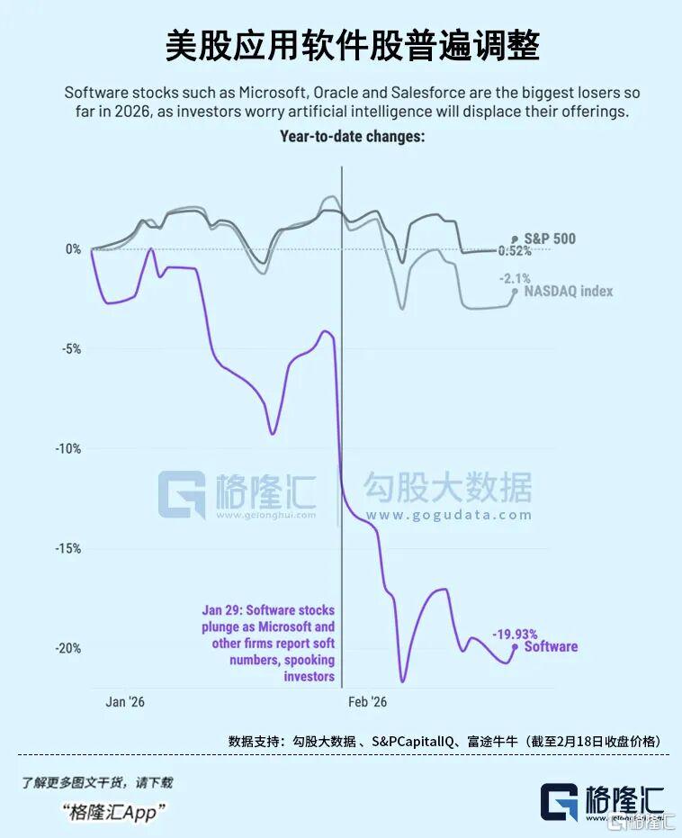 2月Anthropic发布了Claude Cowork的一周内,美国软件股市值蒸发超1万亿美元。