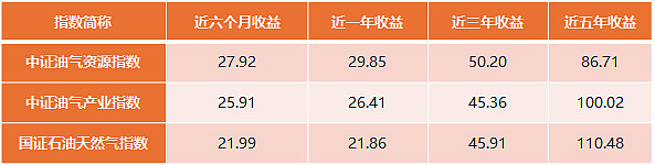 (3)指数最具弹性:得益于中证油气资源指数纯正的编制方案,该指数最近六个月、一年、三年的累计收益在同类指数中领先(均为全收益口径)。