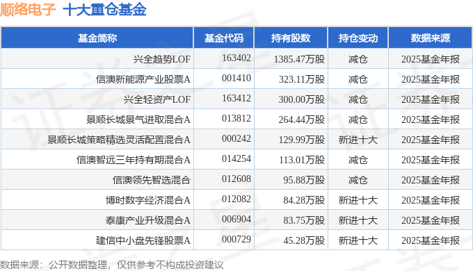 持有顺络电子最多的基金为兴全趋势LOF,目前规模为140.12亿元,最新净值0.8217(2月27日),较上一交易日上涨0.48%,近一年上涨35.44%。该基金现任基金经理为杨世进 谢长雁。