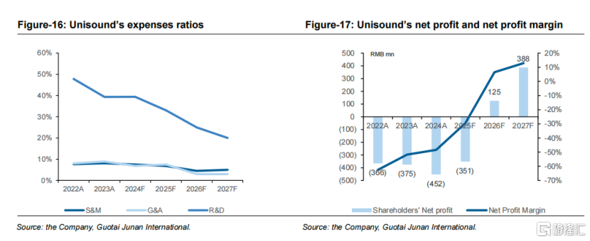 三是费用端的效率优化,公司2025F-2027F销售费用率将从6.8%降至5.0%,研发费用率从33.0%逐步降至20.0%,2025F-2027F研发支出将分别为3.939亿元、4.929亿元和6.007亿元。