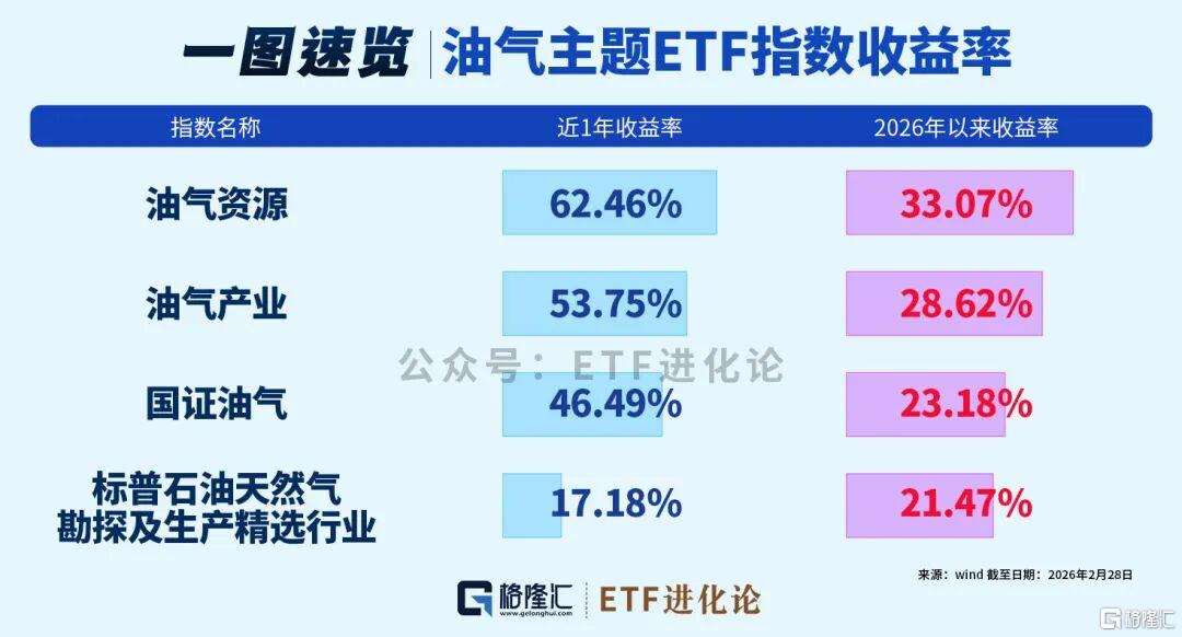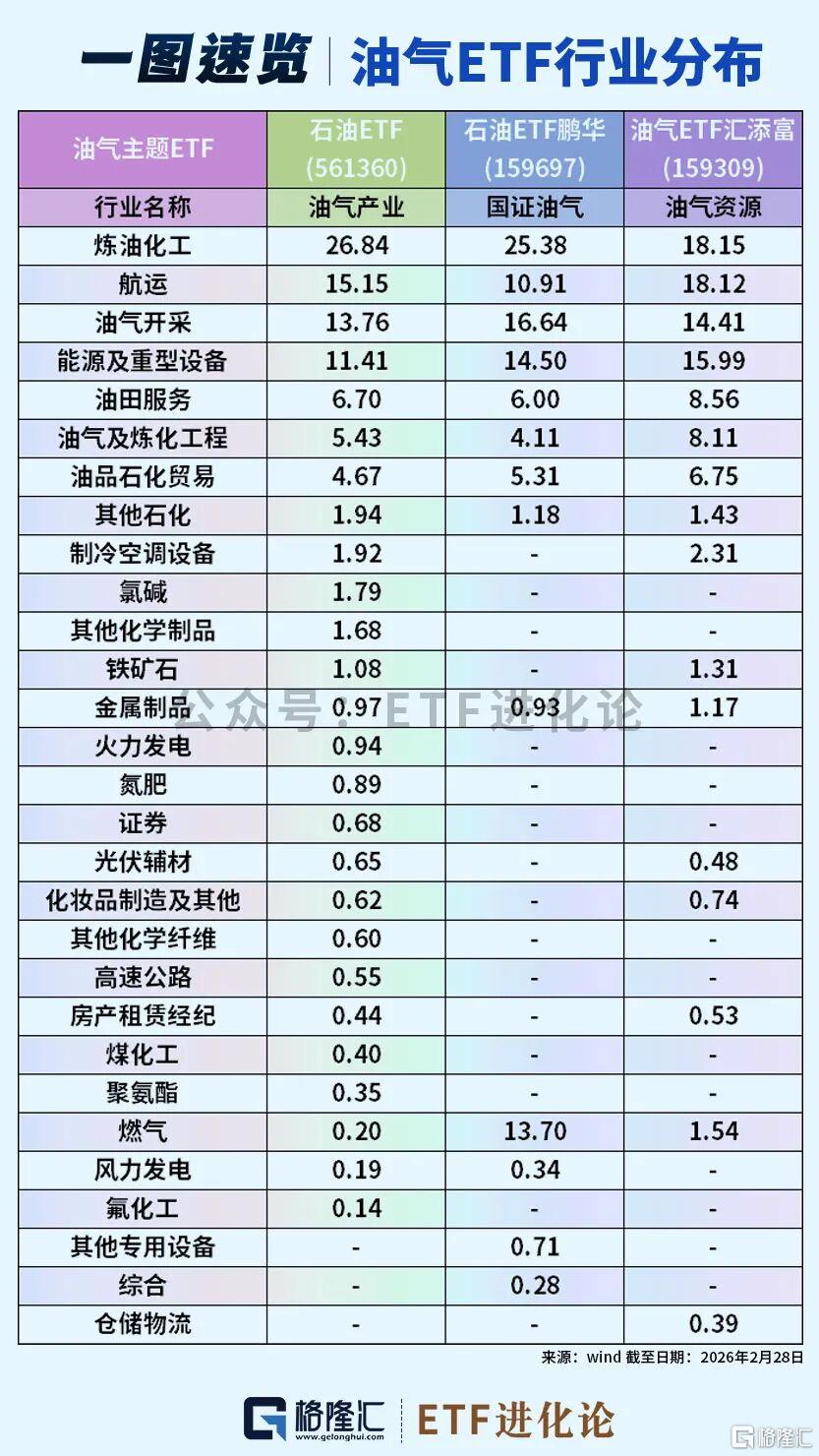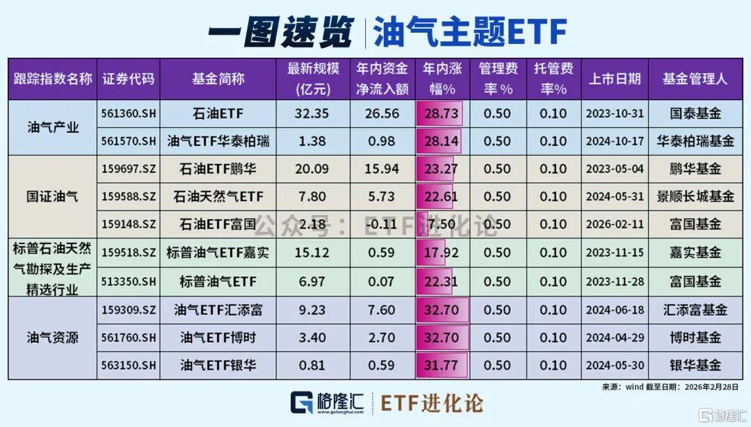 油气ETF领涨,标普油气ETF(513350)、石油ETF(561360)等涨停。