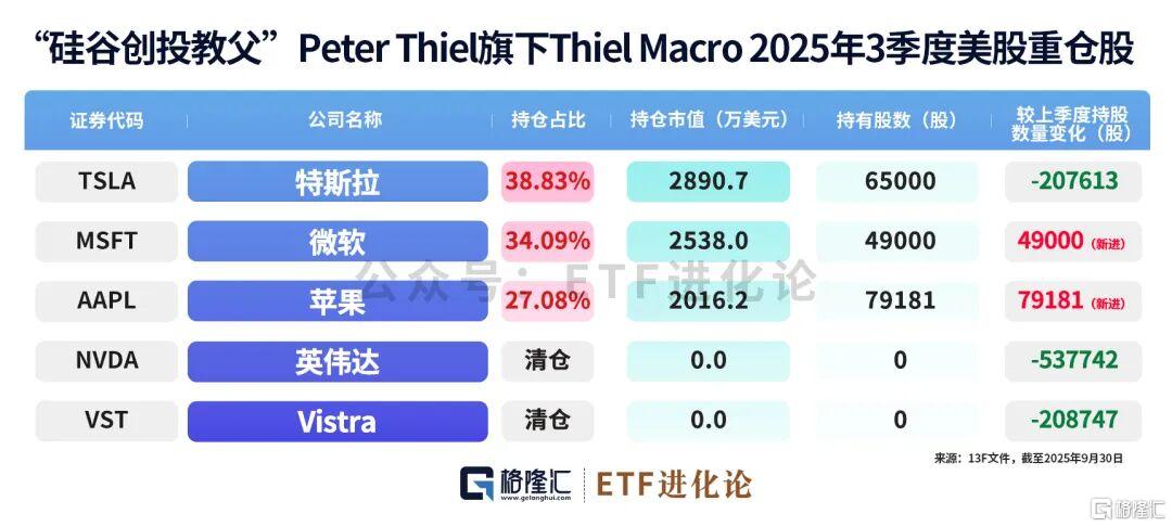 最新披露的美国13F文件显示,彼得·蒂尔旗下蒂尔宏观基金2025年四季度已清仓苹果、微软、特斯拉等所有美股持仓。