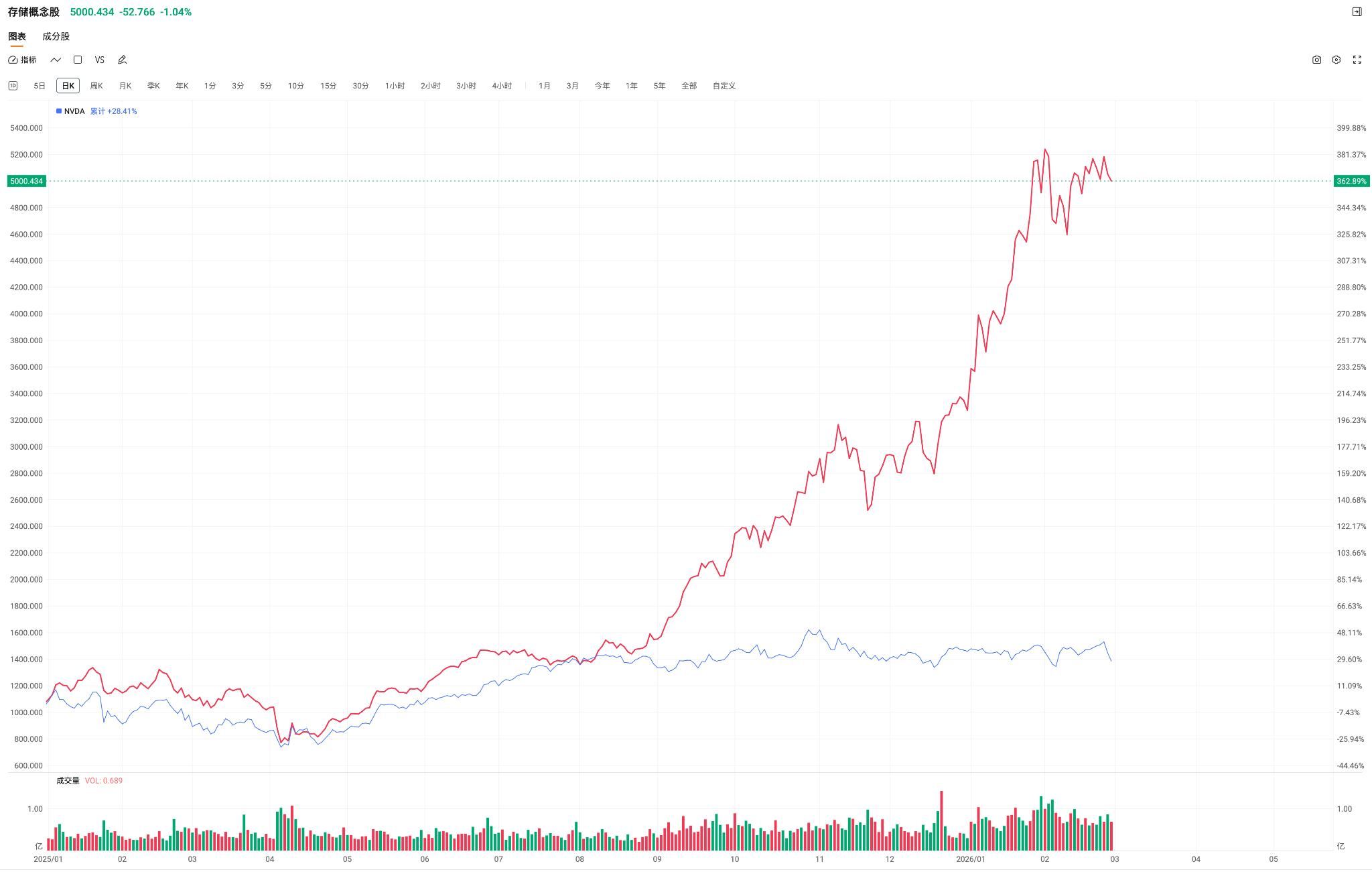 【存储概念股与NVDA自2025年以来涨幅对比,来源:Tradingkey】