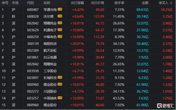温州帮:净买入江钨装备4405万元、科力股份2233万元;净卖出航天彩虹3038万元