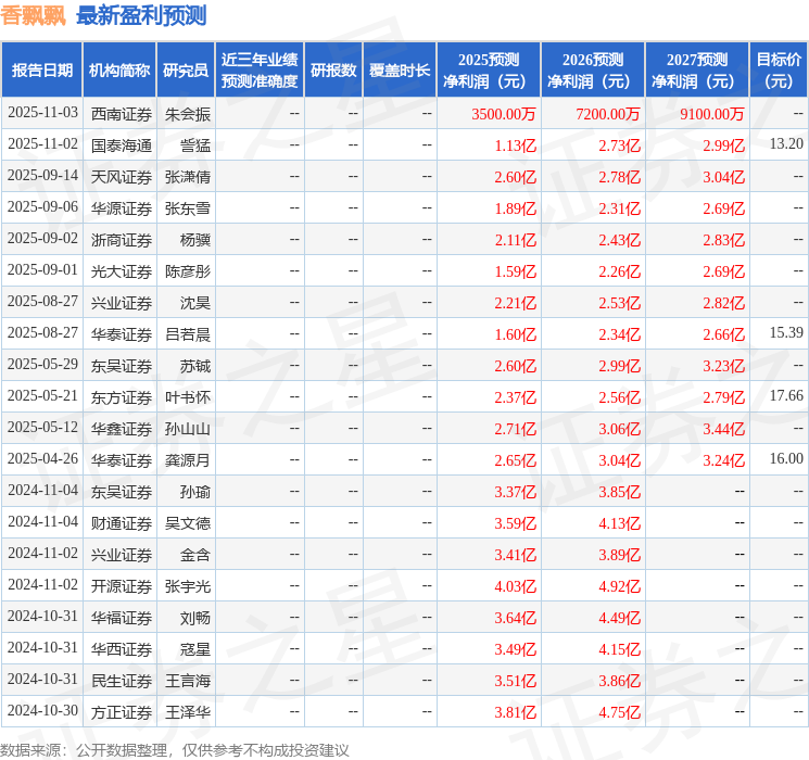 以下是详细的盈利预测信息: