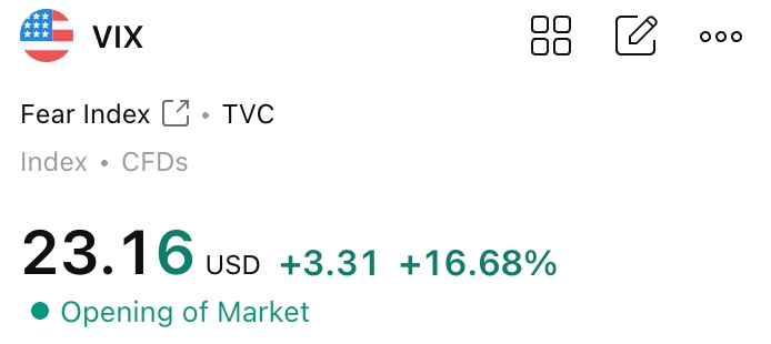 市场恐慌指数VIX指数飙升至25.24点,创自去年11月以来最高水平。