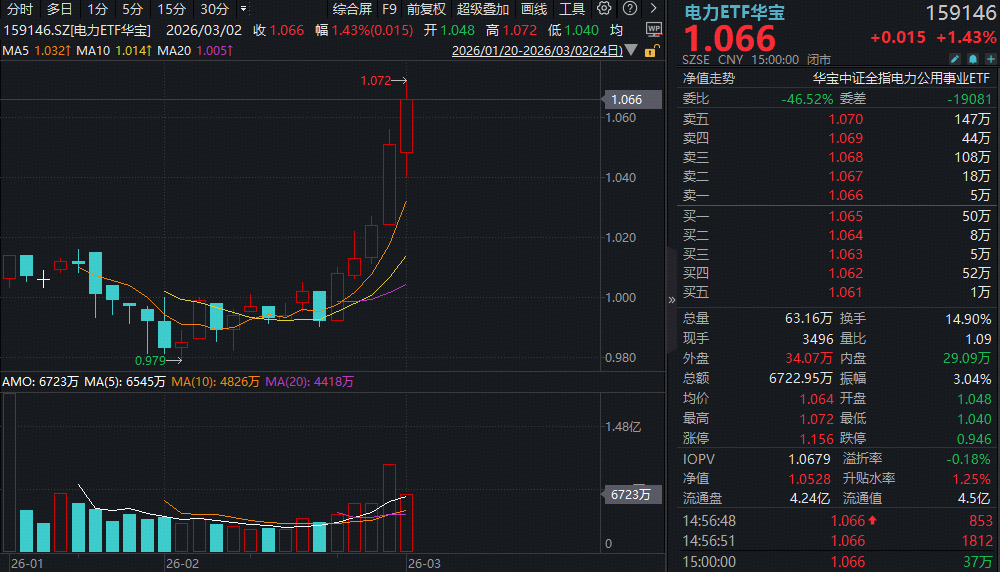 三、涪陵电力两连板!电力ETF华宝(159146)五连阳迭创上市新高!多重利好共振,板块估值有望持续抬升
