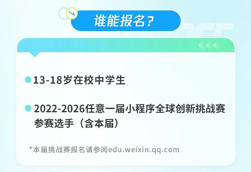 这则招聘的门槛设置得颇为耐人寻味:没有要求年级排名,没有限定名校背景,唯一的硬性条件,是报名者必须为2022-2026任意一届微信小程序全球创新挑战赛的参赛选手。换句话说,腾讯要找的,不是 “想当产品经理的中学生”,而是 “已经当过产品经理的中学生”。
