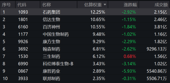 截至11:12,港股通创新药ETF(159570)标的指数权重股多数飘绿:石药集团、康方生物、翰森制药跌超2%,信达生物、百济神州、中国生物制药跌超1%。上涨方面,三生制药逆市飘红。