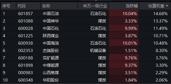 【能源ETF(159930)标的指数前十大成分股】