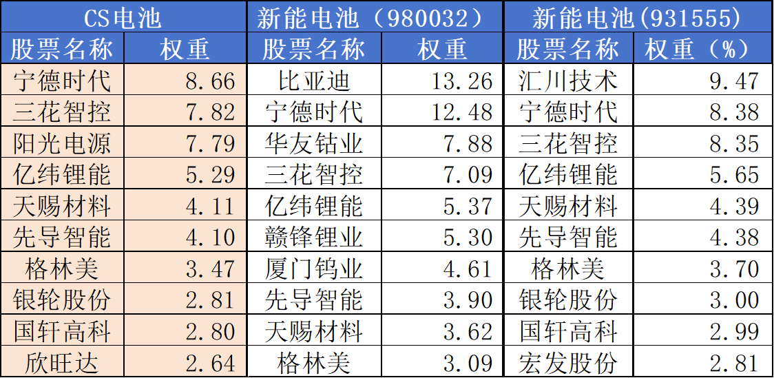 【电池ETF汇添富(159796)标的指数前十大成分股】