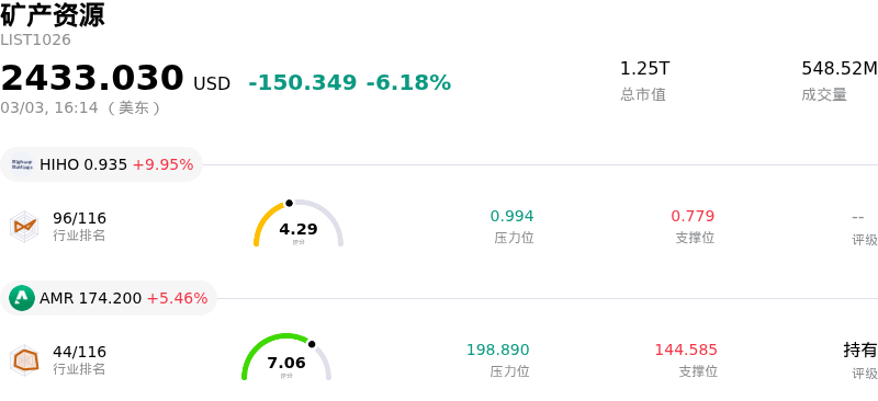 - 纽蒙特 (Newmont) 的股价对金价波动表现出高度敏感性,近期金价回落引发的获利回吐导致其股价盘中大跌 9.5%。