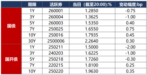 3月3日,受股市下跌以及资金面宽松提振,债市整体偏强,但长债受2月央行买债规模不及预期影响而小幅走弱。截至北京时间20:00,10年期国债活跃券250016收益率上行0.45bp至1.7935%,10年期国开债活跃券250220收益率上行0.35bp至1.9630%。