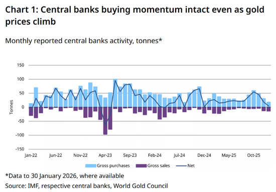 世界黄金协会最新数据显示,1月份各国央行黄金购买量仅为2025年平均月需求量的不到20%,但市场迎来了新的主权玩家入场,表明黄金储备积累的需求基础正在扩大。